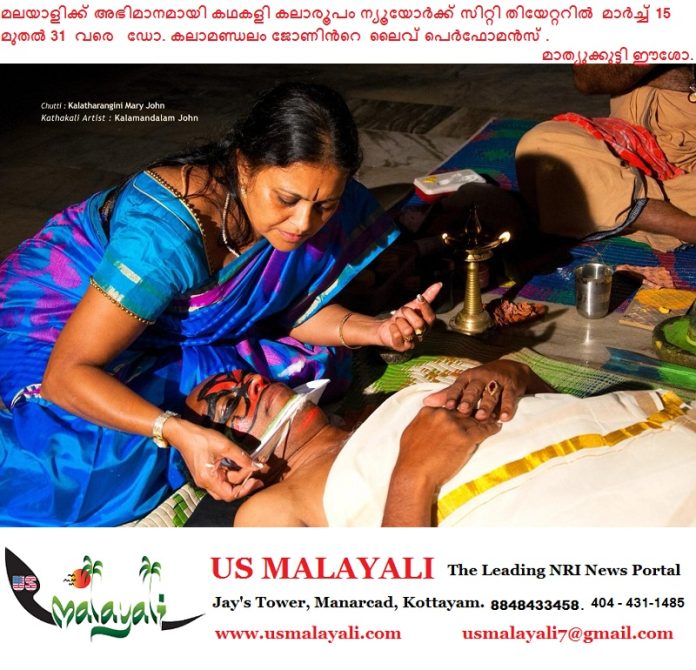 ന്യൂയോർക്ക്: മലയാളികളുടെ പൈതൃക കലാരൂപമായ കഥകളിക്ക് ന്യൂയോർക്കിലും അംഗീകാരം. മലയാളികൾക്ക് അഭിമാനിക്കാവുന്ന സുവർണ്ണ നിമിഷങ്ങളാണ് മാർച്ച് 15 മുതൽ 31 വരെയുള്ള രണ്ടാഴ്ചക്കാലം പത്ത് കഥകളി കാലാവതരണത്തിലൂടെ ന്യൂയോർക്കിലെ ബ്രോഡ് വേ ഷോയ്ക്ക് തത്തുല്യമായി തിയേറ്റർ ഫോർ ദി ന്യൂ സിറ്റി (Theater For The New City, 155 First Avenue, New York, NY 10003) തിയേറ്ററിൽ അരങ്ങേറുവാൻ പോകുന്നത്. ലൈവ് പെർഫോമൻസ് ആർട്ട് ഗണത്തിൽപ്പെടുത്തി കഥകളി എന്ന കലാരൂപം ബൈബിളിൽ പ്രതിപാദിക്കുന്ന മോശയുടെ കാലത്ത് ജീവിച്ചിരുന്ന ഈജിപ്ഷ്യൻ രാജാവ് ഫറവോൻറെ ജീവിതവുമായി കോർത്തിണക്കി അവതരിപ്പിക്കുന്ന മനോഹരമായ പ്രകടനമാണ് ഡോ. കലാമണ്ഡലം ജോൺ കാഴ്ചവെക്കുന്നത്.