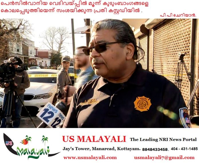 പെൻസിൽവാനിയ :ശനിയാഴ്ച രാവിലെ പെൻസിൽവാനിയയിലെ ഫാൾസ് ടൗൺഷിപ്പിൽ മൂന്ന് കുടുംബാംഗങ്ങളെ കൊലപ്പെടുത്തിയെന്ന് സംശയിക്കുന്ന ഒരാൾ ന്യൂജേഴ്സിയിലെ ട്രെൻ്റണിലേക്ക് രക്ഷപ്പെട്ടതിന് ശേഷം കസ്റ്റഡിയിലെടുത്തതായി പ്രാദേശിക അധികാരികൾ അറിയിച്ചു.