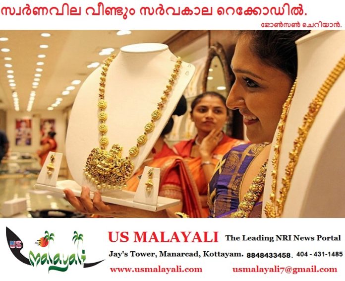 HomeKeralaസ്വർണവില വീണ്ടും സർവകാല റെക്കോഡിൽ. KeralaNews സ്വർണവില വീണ്ടും സർവകാല റെക്കോഡിൽ. By admin March 22, 2024 0 392 Share FacebookTwitterPinterestWhatsApp ജോൺസൺ ചെറിയാൻ. സ്വർണവില വീണ്ടും സർവകാല റെക്കോഡിൽ. ഗ്രാമിന് ഇന്ന് 100 രൂപയാണ് കൂടിയത്. 6,180 രൂപയാണ് ഗ്രാമിന് ഇന്നത്തെ വില. പവന് 800 രൂപ കൂടി 49,440 രൂപയായി. ഈ മാസം ഇതുവരെ സ്വർണത്തിന് കൂടിയത് 3,120 രൂപയാണ്. Share FacebookTwitterPinterestWhatsApp Previous articleഓട്ടോ ഡ്രൈവറെ കുത്തിയ ശേഷം ഗ്രഹനാഥൻ ആത്മഹത്യ ചെയ്തു.Next articleസയൻസ് ഫിക്ഷൻ ടു റിയാലിറ്റി. adminhttp://usmalayali.com RELATED ARTICLES America ഡള്ളസിൽ സംഗീതസാന്ദ്രമായ വാലന്റൈൻ സായാഹ്നം; ‘സസ്നേഹം വാലന്റൈൻ’ ഫെബ്രുവരി 14-ന് . February 13, 2026 America ഫ്ലോറിഡയിലുണ്ടായ ഇരട്ട വെടിവെപ്പിൽ 7 പേർ കൊല്ലപ്പെട്ടതായി പോലീസ് . February 13, 2026 America ഫൊക്കാന 2026–2028: മാറ്റത്തിന്റെ അമരക്കാരാകാൻ ലീല മാരേട്ടും ‘ടീം എംപവറും’. February 13, 2026 LEAVE A REPLY Cancel reply Comment: Please enter your comment! Name:* Please enter your name here Email:* You have entered an incorrect email address! Please enter your email address here Website: Save my name, email, and website in this browser for the next time I comment. Most Popular ഡള്ളസിൽ സംഗീതസാന്ദ്രമായ വാലന്റൈൻ സായാഹ്നം; ‘സസ്നേഹം വാലന്റൈൻ’ ഫെബ്രുവരി 14-ന് . February 13, 2026 ഫ്ലോറിഡയിലുണ്ടായ ഇരട്ട വെടിവെപ്പിൽ 7 പേർ കൊല്ലപ്പെട്ടതായി പോലീസ് . February 13, 2026 ഫൊക്കാന 2026–2028: മാറ്റത്തിന്റെ അമരക്കാരാകാൻ ലീല മാരേട്ടും ‘ടീം എംപവറും’. February 13, 2026 ഫ്ലോറിഡ സർവകലാശാലയിൽ വൻ ആത്മീയ ഉണർവ്; 1,600 വിദ്യാർത്ഥികൾ ക്രിസ്തുവിശ്വാസത്തിലേക്ക് . February 13, 2026 Load more Recent Comments