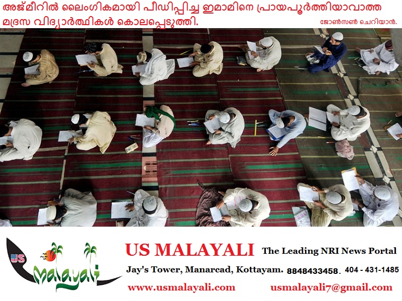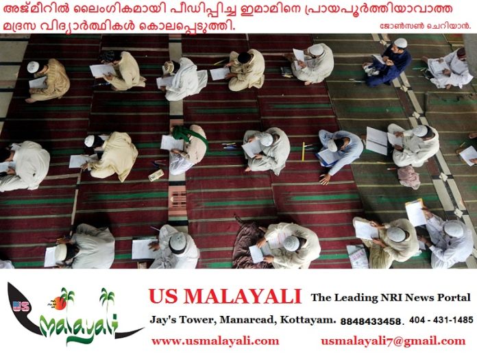 അജ്മീറിലെ മുഹമ്മദി മസ്ജിദിലെ ഇമാം മൗലാന മുഹമ്മദ് മാഹിർ ആണ് കൊല്ലപ്പെട്ടത്. ടൈംസ് ഓഫ് ഇന്ത്യയാണ് വാർത്ത റിപ്പോർട്ട് ചെയ്യുന്നത്. സംഭവത്തിൽ ആറ് വിദ്യാർത്ഥികളെ കസ്റ്റഡിയിലെടുത്തെന്ന് പൊലീസ് അറിയിച്ചു.പ്രായപൂർത്തിയാവാത്ത ആറ് വിദ്യാർഥികളെയാണ് കസ്റ്റഡിയിലെടുത്തെന്നും അജ്മീർ പൊലീസ് അറിയിച്ചു. പ്രായപൂർത്തിയാവാത്ത വിദ്യാർത്ഥികള് ആയതിനാൽ അവരുടെ വിശദാംശങ്ങള് പുറത്തുവിട്ടിട്ടില്ല.
