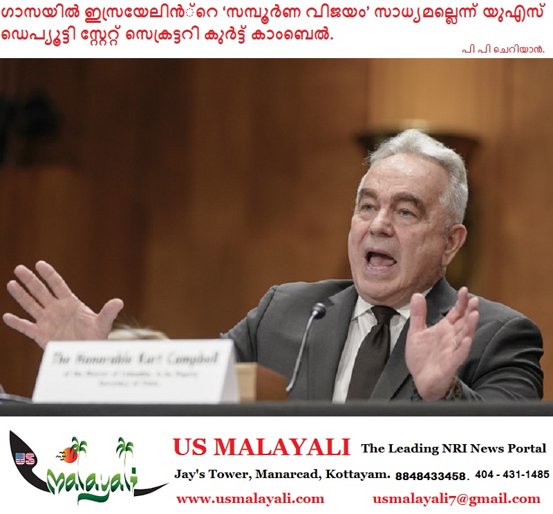 മിയാമിയിൽ നടന്ന നാറ്റോ യൂത്ത് ഉച്ചകോടിയിൽ സംസാരിക്കവെ, ഗാസയിലെ വിജയത്തിൻ്റെ സിദ്ധാന്തം എന്താണെന്നതിനെ കുറിച്ച് യുഎസ് പോരാടുകയാണെന്ന് ഡെപ്യൂട്ടി സ്റ്റേറ്റ് സെക്രട്ടറി കുർട്ട് കാംബെൽ പറഞ്ഞു.
