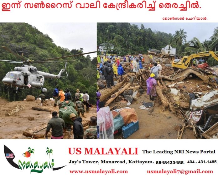 ചൂരല്മലയേയും മുണ്ടക്കൈയേയും പിടിച്ചുകുലുക്കിയ ഉരുള്പൊട്ടലുണ്ടായിട്ട് ഇന്ന് എട്ടുദിവസം. ഒരാഴ്ച പിന്നിടുമ്പോഴും തെരച്ചില് തുടരുകയാണ്. സൂചിപാറയിലെ സൺറൈസ് വാലി കേന്ദ്രീകരിച്ചുകൊണ്ട് ഇന്ന് തെരച്ചിൽ നടത്തും. വനം വകുപ്പ്,ഉദ്യോഗസ്ഥരും പൊലീസും ഫയർഫോഴ്സും എന്ഡിആർഎഫും സ്ഥലത്തെത്തി തിരച്ചിലിന്റെ ഭാഗമാകും. ചാലിയാറിന്റെ വിവിധ മേഖലകളിൽ ഹെലികോപ്റ്റർ സംവിധാനം ഉപയോഗിച്ചു പരിശോധന നടത്തുന്നുണ്ട്. സൂചിപാറയ്ക്ക് താഴെയുള്ള വെള്ളച്ചാട്ടങ്ങൾക്ക് സമീപവും പരിശോധന നടത്തും.
