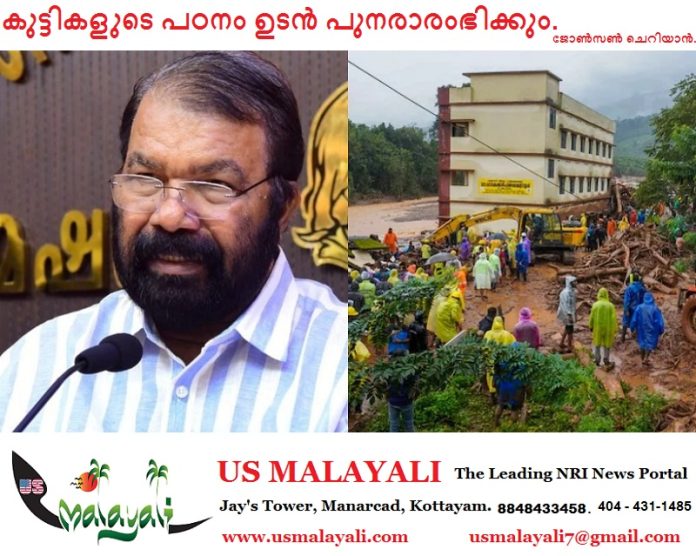 വയനാട്ടിലെ ദുരന്തബാധിത പ്രദേശങ്ങളിലെ സ്കൂൾ വിദ്യാഭ്യാസം ഉടൻ പുനഃരാരംഭിക്കുമെന്ന് മന്ത്രി വി ശിവൻകുട്ടി. നിലവിൽ സ്കൂൾ തുറന്ന് പ്രവർത്തിക്കൽ ദുഷ്ക്കരമാണെന്നും താൽക്കാലിക സംവിധാനം ഒരുക്കുമെന്നും അദ്ദേഹം പറഞ്ഞു. കുട്ടികൾക്ക് കൗൺസിലിങ് നടത്തുന്നുണ്ട്. പാഠപുസ്തകങ്ങളുടെ പ്രിൻ്റിങ് ആരംഭിച്ചിട്ടുണ്ട്. സർട്ടിഫിക്കറ്റുകൾ നഷ്ടമായവർക്ക് ലഭ്യമാക്കാനുള്ള കാര്യങ്ങൾ ചെയ്യും. ഇതിനായി മൂന്ന് ജില്ലകളിലെ ഉന്നത ഉദ്യോഗസ്ഥർക്ക് ചുമതല നൽകിയിട്ടുണ്ട്. തകർന്ന രണ്ട് സ്കൂളുകളും വിദ്യാഭ്യാസ വകുപ്പ് നിർമിക്കുമെന്നും ടൗൺ ഷിപ്പ് മാതൃകയിലായിരിക്കും നിർമാണമെന്നും മന്ത്രി 24 നോട് പറഞ്ഞു.
