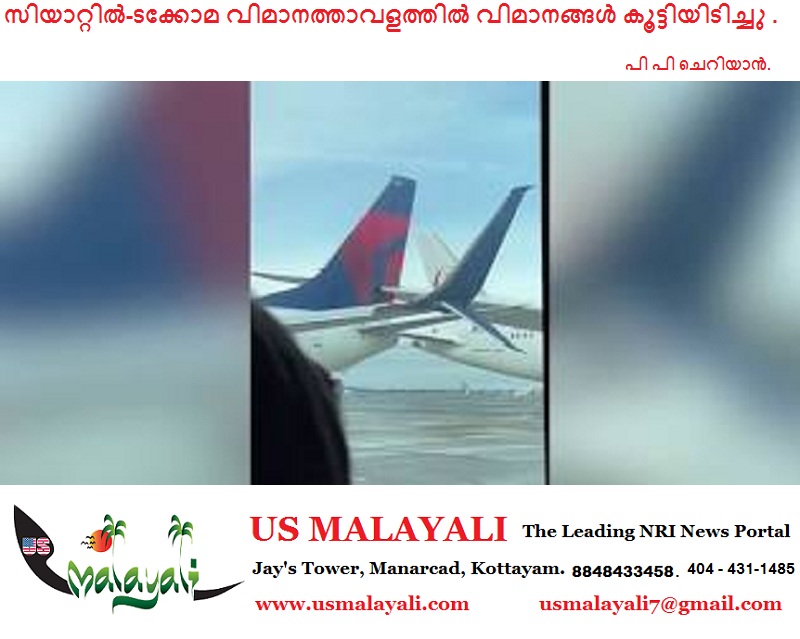 സിയാറ്റിൽ:ബുധനാഴ്ച രാവിലെ സിയാറ്റിൽ-ടക്കോമ വിമാനത്താവളത്തിൽ ടാർമാക്കിലൂടെ നീങ്ങിയിരുന്നു ജപ്പാൻ എയർലൈൻസ് വിമാനം പാർക്ക് ചെയ്തിരുന്ന ഡെൽറ്റ എയർലൈൻസ് വിമാനത്തിൽ ഇടിച്ചു വിമാനങ്ങൾക്ക് കേടുപാടുകൾ സംഭവിച്ചുവെങ്കിലും പക്ഷേ ആർക്കും പരിക്കില്ലെന്ന് റിപ്പോർട്ടുകൾ പറയുന്നു.