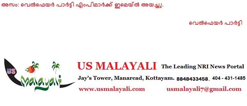 മലപ്പുറം: അസമിൽ മുസ്ലിം ജനസമൂഹത്തെ അന്യായമായി കുടിയൊഴിപ്പിക്കുന്ന വിഷയം പാർലമെന്റിൽ ഉന്നയിക്കണമെന്നും സമ്മർദ്ദം ചെലുത്തണമെന്നും ആവശ്യപ്പെട്ട് പ്രിയങ്കാ ഗാന്ധി, ഇ.ടി. മുഹമ്മദ് ബഷീർ, അബ്ദുസ്സമദ് സമദാനി, പി.വി. അബ്ദുൽ വഹാബ് തുടങ്ങിയ എംപിമാർക്ക് വെൽഫെയർ പാർട്ടി മലപ്പുറം ജില്ലാ പ്രസിഡണ്ട് കെവി സഫീർഷ ഇമെയ്ൽ അയച്ചു.