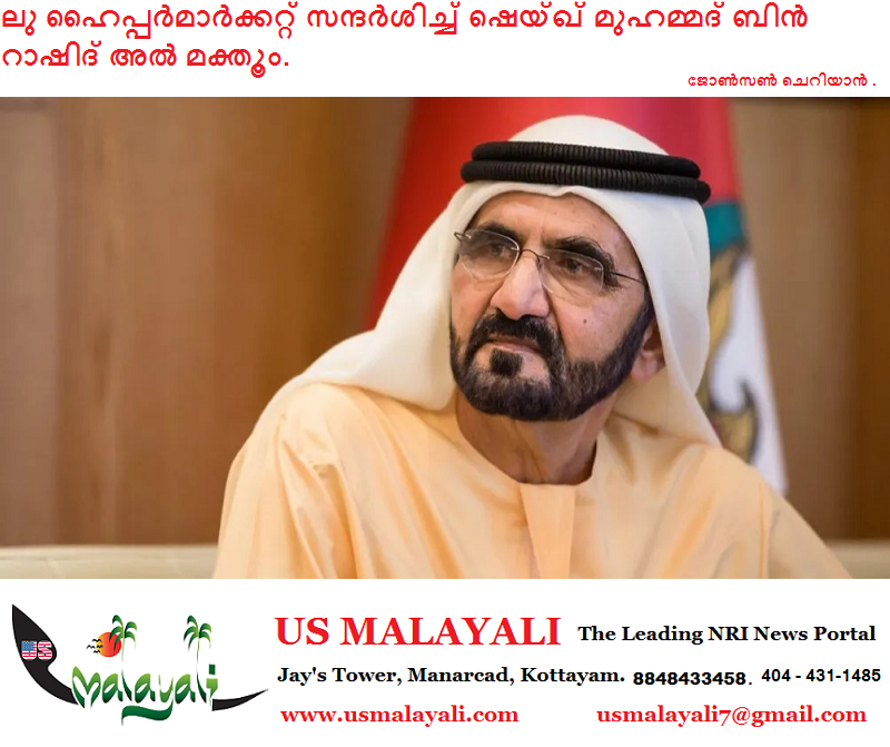 ദുബായ് സിലിക്കൺ സെൻട്രൽ മാളിലെ ലുലു ഹൈപ്പർമാർക്കറ്റ് സന്ദർശിച്ച് യുഎഇ വൈസ് പ്രസിഡന്റും പ്രധാനമന്ത്രിയും ദുബായ് ഭരണാധികാരിയുമായ ഹിസ് ഹൈനസ് ഷെയ്ഖ് മുഹമ്മദ് ബിൻ റാഷിദ് അൽ മക്തൂം. ഒരു മണിക്കൂറിലേറെ സിലിക്കൺ സെൻട്രൽ മാളിൽ അദേഹം സന്ദർശനം നടത്തി.