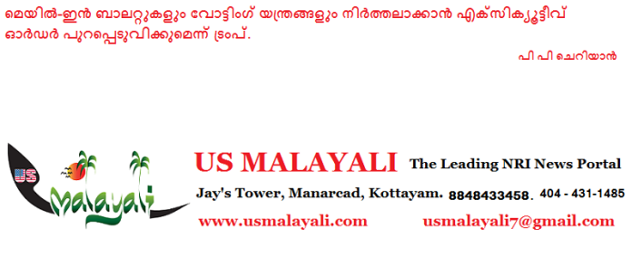 വാസിങ്ടൺ ഡി സി :2026-ലെ ഇടക്കാല തിരഞ്ഞെടുപ്പിന് മുന്നോടിയായി മെയിൽ-ഇൻ ബാലറ്റുകളുടെയും വോട്ടിംഗ് യന്ത്രങ്ങളുടെയും ഉപയോഗം അവസാനിപ്പിക്കാൻ ഒരു എക്സിക്യൂട്ടീവ് ഓർഡർ പുറപ്പെടുവിക്കുമെന്ന് യുഎസ് പ്രസിഡന്റ് ഡൊണാൾഡ് ട്രംപ് തിങ്കളാഴ്ച പ്രഖ്യാപിച്ചു. ഇത് വിവിധ സംസ്ഥാനങ്ങളിൽ നിന്ന് നിയമപരമായ വെല്ലുവിളികൾക്ക് കാരണമായേക്കാം.