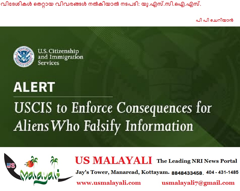 വാഷിംഗ്ടൺ ഡി സി :അമേരിക്കൻ പൗരത്വ-കുടിയേറ്റ സേവനങ്ങൾ (USCIS) കുടിയേറ്റ സംവിധാനം ദുരുപയോഗം ചെയ്യാനോ വഞ്ചിക്കാനോ ശ്രമിക്കുന്ന വിദേശികളെ കണ്ടെത്താനായി കർശനമായ പരിശോധനാ സംവിധാനങ്ങൾ പുനഃസ്ഥാപിക്കുന്നു. യു.എസ്. പൗരത്വത്തിന് കള്ള അവകാശവാദം ഉന്നയിക്കുന്നവരെയും ഇതിൽ ഉൾപ്പെടുത്തും. കുടിയേറ്റ തട്ടിപ്പുകളുടെ പ്രത്യാഘാതങ്ങളെക്കുറിച്ച് വിദേശികൾക്കും പൊതുജനങ്ങൾക്കും ഇടയിൽ അവബോധം വർദ്ധിപ്പിക്കാനും യു.എസ്.സി.ഐ.എസ്. ശ്രമിക്കുന്നുണ്ട്. തെറ്റായ വിവരങ്ങൾ നൽകി കുടിയേറ്റ ആനുകൂല്യങ്ങൾ നേടുന്ന വിദേശികൾക്ക് ഗുരുതരമായ പ്രത്യാഘാതങ്ങൾ നേരിടേണ്ടിവരും.