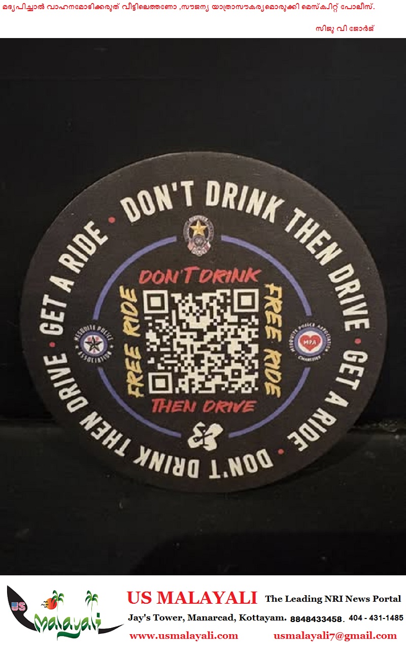 മെസ്ക്വിറ്റ്(ഡാളസ്): മദ്യപിച്ച് വാഹനമോടിക്കുന്നത് തടയാൻ സൗജന്യ Lyft യാത്രാസൗകര്യം നൽകാനൊരുങ്ങി മെസ്ക്വിറ്റ് പോലീസ്. മദ്യപിച്ച് വാഹനമോടിക്കുന്നവരെ വീട്ടിലെത്തിക്കാൻ സഹായിക്കുന്നതിനായി പുതിയൊരു പദ്ധതിക്ക് മെസ്ക്വിറ്റ് പോലീസും അസോസിയേഷനും ചേർന്ന് തുടക്കം കുറിച്ചു.