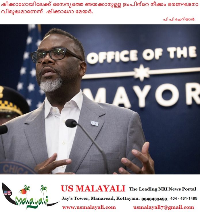 “പ്രസിഡന്റ് നിർദ്ദേശിക്കുന്നത് നമ്മുടെ ഭരണഘടനയുടെ ഏറ്റവും നഗ്നമായ ലംഘനമായിരിക്കും. ഷിക്കാഗോക്ക് ഒരു സൈനിക അധിനിവേശം ആവശ്യമില്ല. ട്രംപിന്റെ നയം അമേരിക്കൻ ജനതയെ ഭിന്നിപ്പിക്കാൻ വേണ്ടി മാത്രമുള്ളതാണ്.” – ജോൺസൺ X-ൽ കുറിച്ചു.