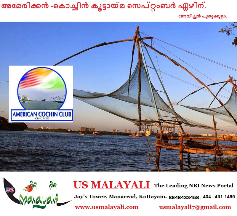 ഷിക്കാഗോ: അലുമ്നി അസോസിയേഷന് ഓഫ് സേക്രട്ട് ഹാര്ട്ട് കോളജ് ആന്ഡ് അമേരിക്കന് കൊച്ചിന് ക്ലബ് ചിക്കാഗോ സംയുക്തമായി സംഘടിപ്പിക്കുന്ന അമേരിക്കന് കൊച്ചിന് കൂട്ടായ്മ സെപ്റ്റംബര് ഏഴിന് ഞായറാഴ്ച നടക്കും. പരിപാടിയിലേക്ക് ഏവരേയും സ്വാഗതം ചെയ്യുന്നതായി ഭാരവാഹികള് അറിയിച്ചു.