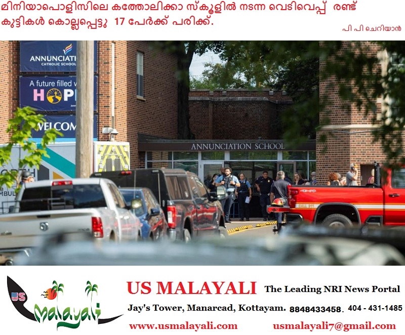 മിനിയാപൊളിസ്: മിനിയാപൊളിസിലെ കത്തോലിക്കാ സ്കൂളിലുണ്ടായ വെടിവെപ്പിൽ എട്ടും 10-ഉം വയസ്സുള്ള രണ്ട് കുട്ടികൾ കൊല്ലപ്പെട്ടു. പ്രഭാത പ്രാർത്ഥന നടക്കുന്നതിനിടെയാണ് സംഭവം. അക്രമത്തിൽ 17 പേർക്ക് പരിക്കേറ്റു, ഇതിൽ 14 കുട്ടികളാണ്. പരിക്കേറ്റ രണ്ട് കുട്ടികളുടെ നില ഗുരുതരമാണ്.