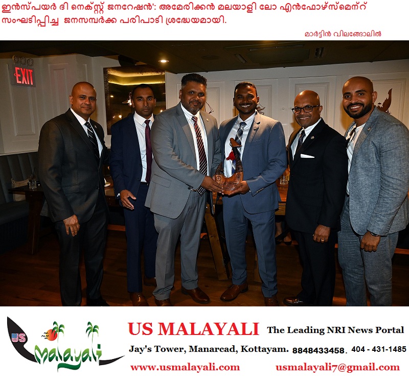 നിയമ നിർവഹണ മേഖലയിലെ ഉദ്യോഗസ്ഥരും, സാമൂഹ്യ നേതാക്കളും, യുവജനങ്ങളും ഒത്തുചേർന്നു. സേവനമേഖലയിലെ അറിവുകളും അനുഭവങ്ങളും ഇവർ പങ്കുവെച്ചു. മലയാളി ലോ എൻഫോഴ്സ്മെന്റ് നേതൃത്വം നൽകിയ ഈ പരിപാടി കേരളത്തിന്റെ സാംസ്കാരിക പൈതൃകം വിളിച്ചോതുന്ന വേദി കൂടിയായി.