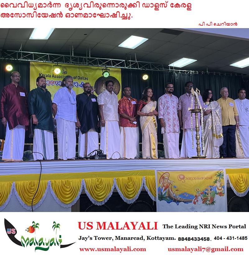 ഡാളസ്: വൈവിധ്യമാർന്ന ദൃശ്യവിരുന്നിനു വേദിയൊരുക്കി ഡാളസ് കേരള അസോസിയേഷൻ സംഘടിപ്പിച്ച ഓണമാഘോഷം ആകർഷകമായി സെപ്റ്റംബർ 6-ന് രാവിലെ 10 മണിക്ക് മാർ ഗ്രിഗോറിയോസ് മെമ്മോറിയൽ ഹാളിൽ വെച്ച് (MGM Hall) വെച്ചായിരുന്നു ഓണാഘോഷം.