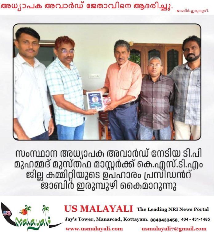 കടവനാട് ഫിഷറീസ് യു.പി. സ്കൂൾ പ്രധാനധ്യാപകനായ ടി.പി. മുസ്തഫ മാസ്റ്ററെ കേരള സ്കൂൾ ടീച്ചേഴ്സ് മൂവ്മെന്റ്(കെ.എസ്.ടി.എം) ജില്ല കമ്മിറ്റി ആദരിച്ചു.