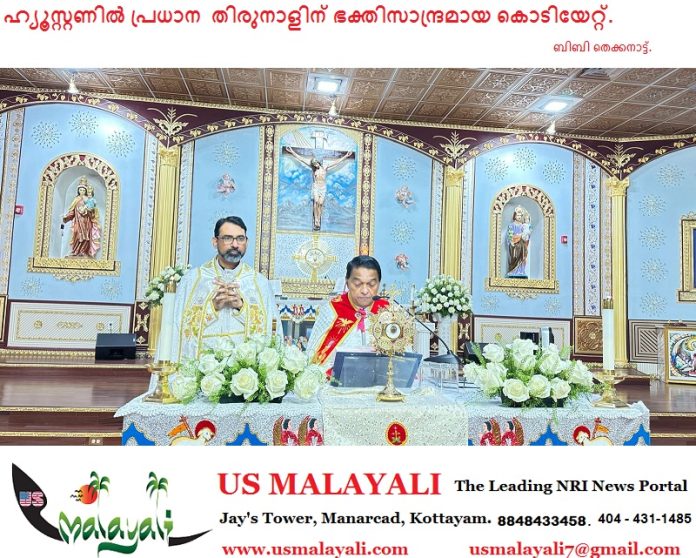 കൊടിയേറ്റിനു ഒരുക്കമായി ദൈവാലയത്തിൽ വച്ച് തിരുനാൾ പതാക വെഞ്ചരിച്ചു യുവജനങ്ങൾക്ക് നൽകുകയും, തുടർന്ന് മുത്തുക്കുടകളുടെയും, ചെണ്ടമേളത്തിന്റെയും, ഗായകസംഘത്തിന്റെയും, അകമ്പടിയോടെ എല്ലാവരും പ്രദിക്ഷിണമായി കൊടിമരചുവട്ടിലേക്കു പോവുകയും ചെയ്തു. തുടർന്ന് ഇടവകയിലെ വിശ്വാസസമൂഹത്തെ സാക്ഷി നിർത്തി ഫാ.എബ്രഹാം മുത്തോലത്ത്, അസ്സിസ്റ്റന്റ്.വികാരി ഫാ.ജോഷി വലിയവീട്ടിൽ എന്നിവർ പതാക ഉയർത്തി.