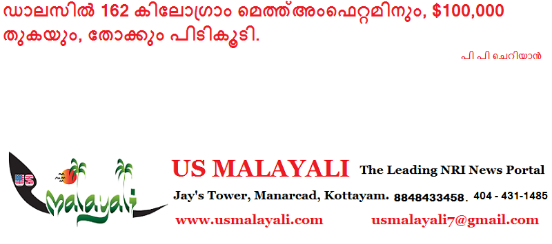 ഡാളസ് :വെസ്റ്റ് ഓക്ക് ക്ലിഫ് ഭാഗത്ത് മയക്കുമരുന്ന് കടത്തുകാരനെ കുറിച്ചു ലഭിച്ച വിവരത്തിന്റെ അടിസ്ഥാനമാക്കി, ഡാലസ് പൊലീസ് ഒക്ടോബര് ആദ്യവാരം നടത്തിയ റെയ്ഡില് 162 കിലോഗ്രാം മെത്ത്അംഫെറ്റമിനും, $100,000 തുകയും, തോക്കും പിടികൂടി.