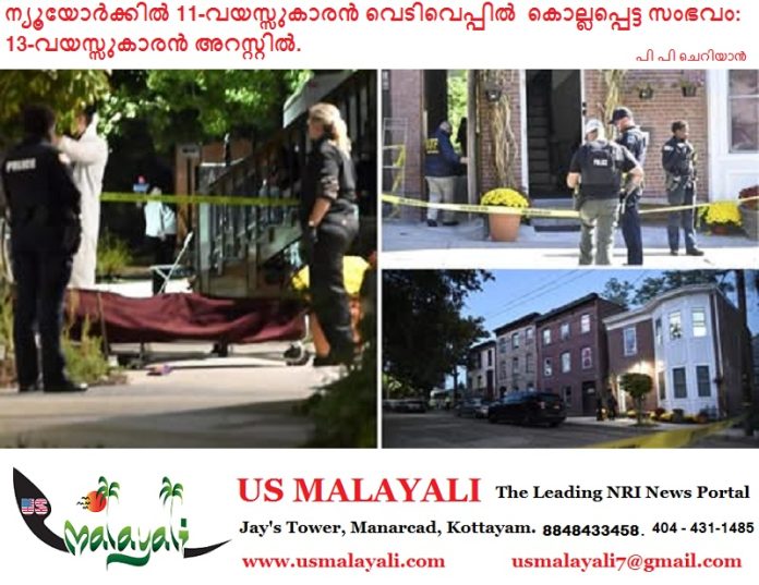 ന്യൂയോർക്ക്: ന്യൂയോർക്കിലെ ഒരു വീടിനുള്ളിൽ 11 വയസ്സുകാരനെ വെടിവച്ചുകൊന്ന കേസിൽ 13 വയസ്സുള്ള ഒരു ആൺകുട്ടിയെ അറസ്റ്റ് ചെയ്ത് രണ്ടാം ഡിഗ്രി കൊലപാതകക്കുറ്റം ചുമത്തി.