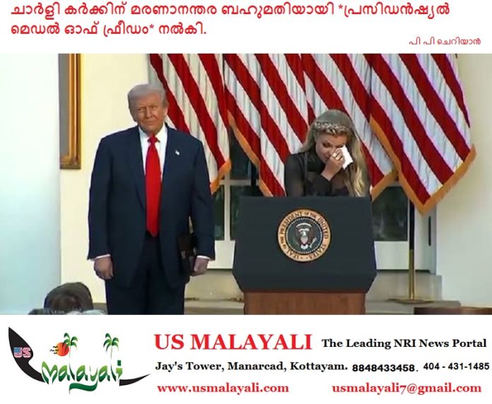 ചാർളി കർക്കിനെ “സ്വാതന്ത്ര്യത്തിനായുള്ള പോരാളിയും യുവജനങ്ങളെ ആകർഷിച്ച നേതാവും” ആയി ട്രംപ് വിശേഷിപ്പിച്ചു. യൂത്തിനെ സജീവമാക്കിയ Turning Point USA എന്ന സംഘടനയുടെ സ്ഥാപകനായ കർക്കിനെ ട്രംപ് “സത്യത്തിന്റെയും സ്വാതന്ത്ര്യത്തിന്റെയും শহീദായി” ചിത്രീകരിച്ചു.