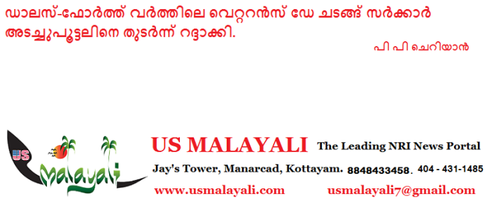 ഡാലസ്ടെ(ക്സാസ്) :സർക്കാർ അടച്ചുപൂട്ടലിനെ (Government Shutdown) തുടർന്ന് ഈ വർഷത്തെ ഡാലസ്–ഫോർത്ത് വർത്ത് നാഷണൽ സെമിത്തേരിയിലെ വാർഷിക **വെറ്ററൻസ് ഡേ പരിപാടി** റദ്ദാക്കി..