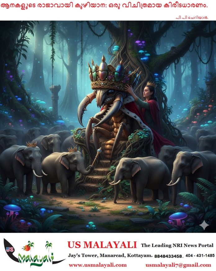 അങ്ങനെ, ആമനക്കാടിന്റെ ചരിത്രത്തിലാദ്യമായി, വലിപ്പമില്ലാത്ത, തുമ്പിക്കൈയില്ലാത്ത, ചിന്നം വിളിക്കാൻ അറിയാത്ത ഒരു കുഴിയാന, ആനകളുടെ രാജാവായി (സംഘടനാ നേതാവായി) കിരീടം അണിഞ്ഞു.