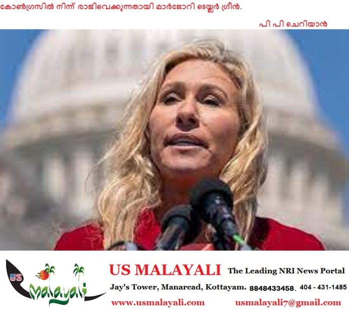 വാഷിംഗ്ടൺ ഡി.സി. – മുൻപ് പ്രസിഡന്റ് ഡൊണാൾഡ് ട്രംപിന്റെ വിശ്വസ്തയായിരുന്ന, എന്നാൽ ഇപ്പോൾ വിമർശകയായി മാറിയ ജോർജിയയിൽ നിന്നുള്ള യു.എസ്. പ്രതിനിധി (റെപ്രസന്റേറ്റീവ്) മാർജോറി ടെയ്ലർ ഗ്രീൻ ജനുവരിയിൽ കോൺഗ്രസിൽ നിന്ന് രാജിവെക്കുമെന്ന് വെള്ളിയാഴ്ച അറിയിച്ചു.
