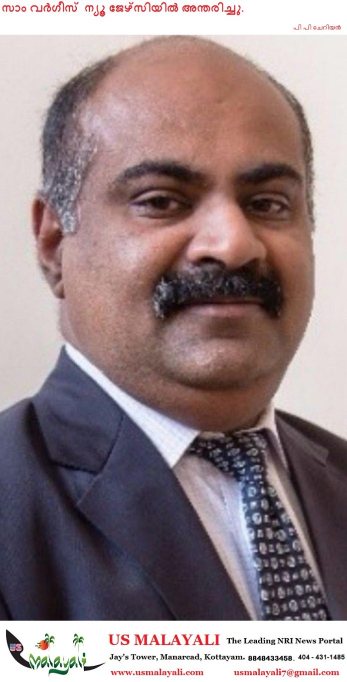 ന്യൂ ജേഴ്സി :സാം വർഗീസ് ന്യൂ ജേഴ്സിയിൽ അന്തരിച്ചു. പരേതനായ ശ്രീ ജോൺ വർഗീസിന്റെയും ശ്രീമതി ഗ്രേസി ജോണിന്റെയും മകനും കൊട്ടാരക്കര കുളത്താക്കൽ ആറന്മുള കുടുംബാംഗവുമാണ്.