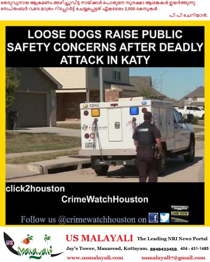 കേറ്റി(ടെക്സാസ്): ഹാരിസ് കൗണ്ടിയിലെ കേറ്റിയിൽ തെരുവുനായ ആക്രമണത്തിൽ ഒരാൾ കൊല്ലപ്പെട്ട സംഭവം, നായ്ക്കൾ അലഞ്ഞുതിരിയുന്നതും മൃഗങ്ങളെ നിയന്ത്രിക്കുന്നതുമായി ബന്ധപ്പെട്ട് നിലനിൽക്കുന്ന പൊതുസുരക്ഷാ പ്രശ്നങ്ങളെക്കുറിച്ച് വീണ്ടും ആശങ്കയുണർത്തുന്നു.