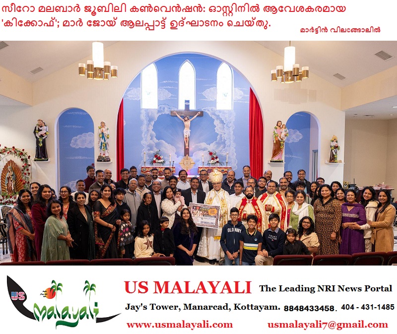 ചിക്കാഗോ: രജതജൂബിലി ആഘോഷിക്കുന്ന ചിക്കാഗോ സീറോ മലബാർ രൂപതയുടെ ജൂബിലി കൺവെൻഷന് ആവേശം പകർന്ന് ഓസ്റ്റിനിലെ സെന്റ് അൽഫോൻസ ദേവാലയത്തിൽ ഇടവകതല ‘കിക്കോഫ്’ സംഘടിപ്പിച്ചു. ഡിസംബർ 14-ന് നടന്ന ചടങ്ങുകൾക്ക് രൂപതാധ്യക്ഷൻ മാർ ജോയ് ആലപ്പാട്ട് മുഖ്യകാർമ്മികത്വം വഹിച്ചു.