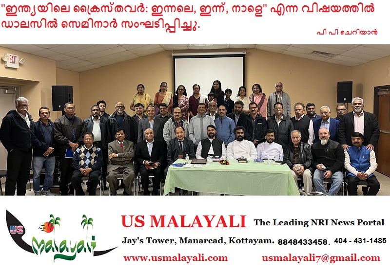 ഡാലസ്: ക്രിസ്ത്യൻ അപ്പോളജറ്റിക്സ് ഡാലസിന്റെ ആഭിമുഖ്യത്തിൽ “ഇന്ത്യയിലെ ക്രൈസ്തവർ: ഇന്നലെ, ഇന്ന്, നാളെ” എന്ന വിഷയത്തിൽ സെമിനാർ സംഘടിപ്പിച്ചു. ഡിസംബർ 18 വ്യാഴാഴ്ച വൈകിട്ട് 7 മണിക്ക് ഡാലസ് സെന്റ് പോൾസ് മാർത്തോമ്മ ദേവാലയത്തിൽ വെച്ച് നടന്ന പരിപാടിയിൽ പ്രമുഖ പ്രഭാഷകനും എഴുത്തുകാരനുമായ റവ. ഡോ. ജോൺസൺ തേക്കടയിൽ മുഖ്യ പ്രഭാഷണം നടത്തി. ഇന്ത്യയിലെ ക്രൈസ്തവ സമൂഹത്തിന്റെ ചരിത്രപരമായ പശ്ചാത്തലവും വർത്തമാനകാല വെല്ലുവിളികളും സെമിനാറിൽ ചർച്ചയായി.ഒക്ലഹോമയിൽ നിന്നും എത്തിയ മണിപ്പൂർ സ്വദേശിയും ലവ് മിനിസ്ട്രി പാസ്റ്ററുമായ ഡോ സായി