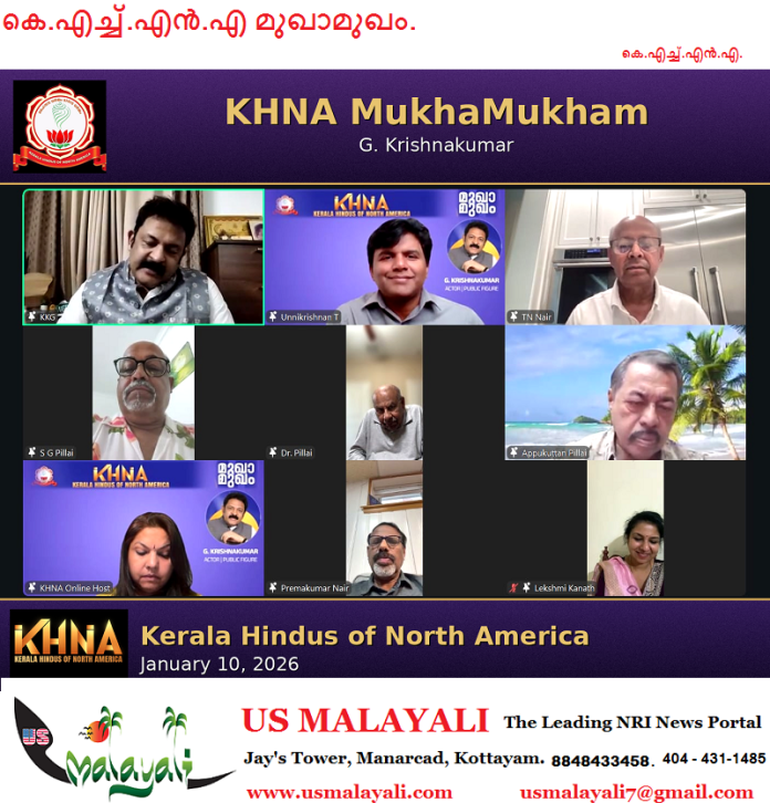 കെ.എച്ച്.എൻ.എ കണക്ടിക്കട്ട് ആർ.വി.പി ശ്രീലക്ഷ്മി അജയ് പ്രാർത്ഥനാഗാനത്തോടെ ആരംഭിച്ച പരിപാടിയിൽ , ജനറൽ സെക്രട്ടറി സിനു നായർ അതിഥികളെ സ്വാഗതം ചെയ്ത്, മുഖാമുഖത്തിന്റെ മുഖ്യാതിഥിയായ പ്രശസ്ത നടനും ബിജെപി നാഷണൽ കൗൺസിൽ അംഗവുമായ ശ്രീ കൃഷ്ണകുമാറിനെ പരിചയപ്പെടുത്തി.