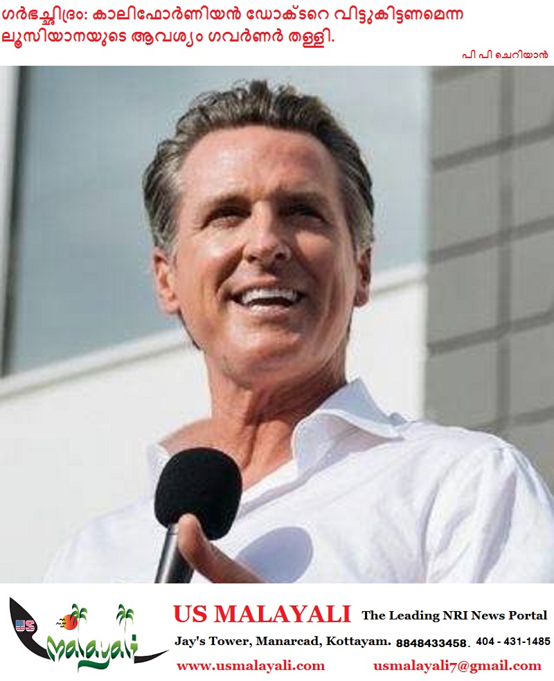സാക്രമെന്റോ: ലൂസിയാനയിലെ ഗർഭച്ഛിദ്ര നിരോധന നിയമങ്ങൾ ലംഘിച്ചുവെന്ന് ആരോപിക്കപ്പെടുന്ന കാലിഫോർണിയൻ ഡോക്ടറെ വിട്ടുകൊടുക്കില്ലെന്ന് ഗവർണർ ഗാവിൻ ന്യൂസം പ്രഖ്യാപിച്ചു. കാലിഫോർണിയയിലെ ഡോക്ടർമാർക്കെതിരെയുള്ള മറ്റ് സംസ്ഥാനങ്ങളുടെ നിയമനടപടികളെ പ്രതിരോധിക്കുന്ന ‘ഷീൽഡ് നിയമങ്ങൾ’ പരീക്ഷിക്കപ്പെടുന്ന നിർണ്ണായക സംഭവമാണിത്.