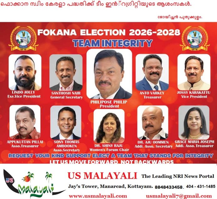 ജനുവരി 18 ന് പാലാ സെൻ്റ് തോമസ് കോളേജിൻ്റെ നീന്തൽ കുളത്തിൽ നടക്കുന്ന പരിശീലന ക്യാമ്പിൻ്റെ സമാപനം പുതിയ ചരിത്രം കുറിക്കുന്ന നിമിഷമായി മാറും എന്നതിൽ സംശയമില്ല. മുഖ്യ പരിശീലകനായ എസ്. പി. മുരളീധരനെ പോലെയുള്ള ലോകോത്തര സാഹസിക നീന്തൽ താരത്തിൻ്റെ പരിശീലനത്തിൽ ചുണക്കുട്ടൻമാരായ നീന്തൽ താരങ്ങളെ സൃഷ്ടിക്കുവാനും അവരുടെ കഴിവും അറിവും കേരളത്തിൻ്റെ യുവ സമൂഹത്തിന് ലഭിക്കുമ്പോൾ ഫൊക്കാന വലിയ ഒരു ജീവകാരുണ്യ പ്രവർത്തനത്തിനാണ് തുടക്കമിടുന്നതെന്ന് ടീം ഇൻ്റഗ്രിറ്റി സ്ഥാനാർത്ഥികളായ ഫിലിപ്പോസ് ഫിലിപ്പ്, സന്തോഷ് നായർ , ആൻ്റോ വർക്കി, ലിൻഡോ ജോളി , ജോസി കാരക്കാട്ട് , അപ്പുക്കുട്ടൻ പിള്ള , സോണി അമ്പൂക്കൻ , ഡോ. ഷൈനി രാജു , ഡോ. അജു ഉമ്മൻ , ഗ്രേസ് മറിയ ജോസഫ് എന്നിവർ അറിയിച്ചു.