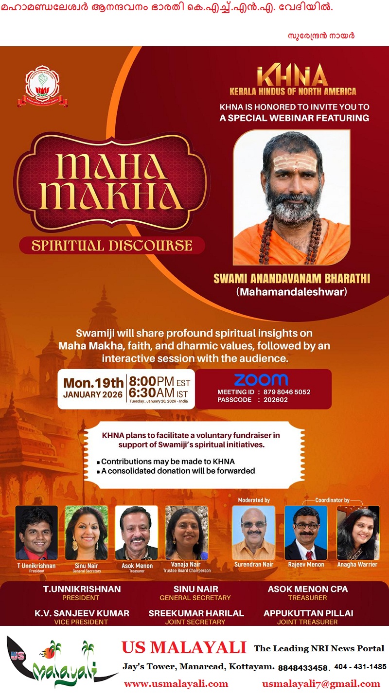 മഹാമാഘത്തിന്റ പ്രസക്തിയും ഭാരതീയ ഋഷി പരമ്പരയുടെ ശേഷിപ്പുകളും ഹൈന്ദവ ധർമ്മത്തിന്റെ ആധ്യാത്മിക വൈപുല്യവും അമേരിക്കൻ ഹൈന്ദവ സമൂഹവുമായി പങ്കുവെക്കാനും