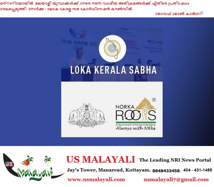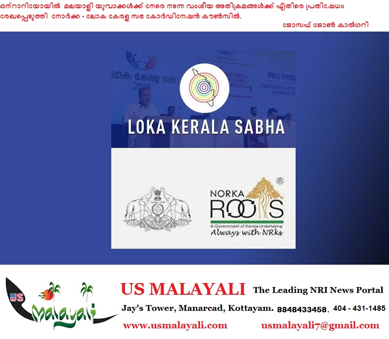 ലണ്ടൻ -ഒന്റാറിയോ : കാനഡയിലെ ലണ്ടൻ ഒന്റാറിയോയിൽ മലയാളി യുവാക്കൾക്ക് നേരെ നടന്ന വംശീയ അതിക്രമങ്ങൾക്ക് എതിരെ ശക്തമായി പ്രതിഷേധം രേഖപ്പെടുത്തി നോർക്ക – ലോക കേരള സഭ കോർഡിനേഷൻ കൗൺസിൽ .