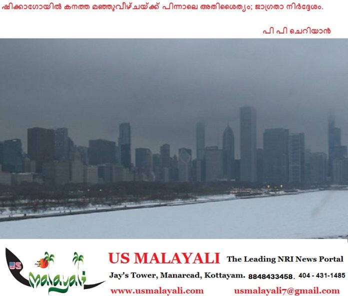 ഷിക്കാഗോ: ഷിക്കാഗോ ഉൾപ്പെടെയുള്ള മേഖലകളിൽ ചൊവ്വാഴ്ച രാത്രി മുതൽ ബുധനാഴ്ച വരെ ശക്തമായ മഞ്ഞുവീഴ്ചയ്ക്ക് സാധ്യതയെന്ന് കാലാവസ്ഥാ നിരീക്ഷണ കേന്ദ്രം. ഇതിനു പിന്നാലെ മേഖലയിൽ അതിശൈത്യം അനുഭവപ്പെടുമെന്നും മുന്നറിയിപ്പുണ്ട്.