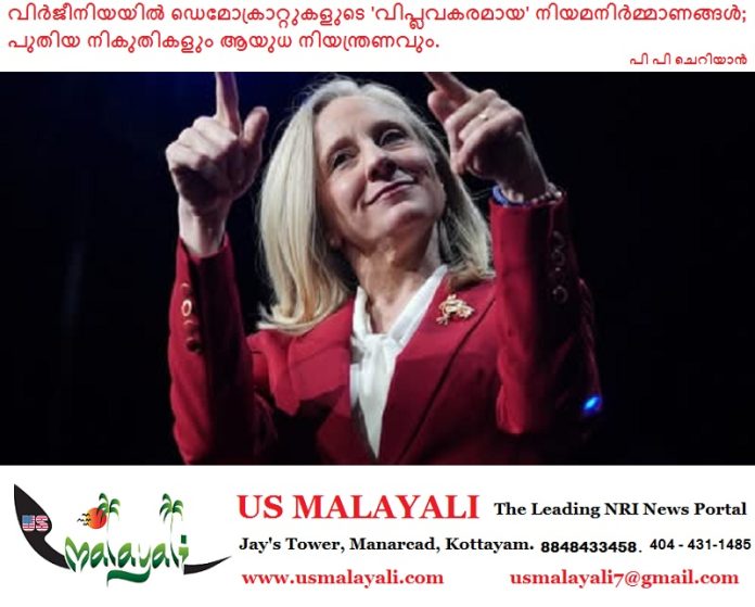 റിച്ചിമണ്ട്, വിർജീനിയ: വിർജീനിയയിൽ ഡെമോക്രാറ്റിക് പാർട്ടി ഭരണം പിടിച്ചെടുത്തതിന് പിന്നാലെ സംസ്ഥാനത്ത് വൻതോതിലുള്ള നിയമപരിഷ്കാരങ്ങൾക്കും പുതിയ നികുതികൾക്കും വഴിതുറക്കുന്ന ബില്ലുകൾ അവതരിപ്പിച്ചു. ജനുവരി 17-ന് ഗവർണറായി ചുമതലയേറ്റ അബിഗയിൽ സ്പാൻബെർഗറുടെ (Abigail Spanberger) നേതൃത്വത്തിലുള്ള പുതിയ ഭരണകൂടം, ഒരാഴ്ചയ്ക്കുള്ളിൽ തന്നെ വിവാദപരമായ നിരവധി ബില്ലുകളാണ് പരിഗണനയ്ക്കായി വെച്ചിരിക്കുന്നത്.