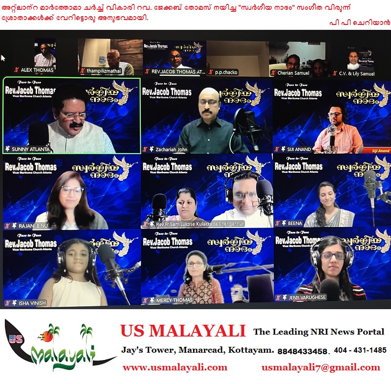 അറ്റ്ലാന്റ: പ്രശസ്ത ഗായകനും വരികളെഴുത്തുകാരനുമായ അറ്റ്ലാന്റ മാർത്തോമാ ചർച്ച് വികാരി റവ. ജേക്കബ് തോമസ് (ആനിക്കാട് അച്ചൻ) നയിച്ച ‘ഫേസ് ടു ഫേസ്’ ലൈവ് സ്ട്രീമിംഗ് സംഗീത നിശ ഭക്തിസാന്ദ്രമായി സമാപിച്ചു.സ്വർഗീയ നാദം കൂട്ടായ്മ ജനുവരി 25 ഞായറാഴ്ച വൈകിട്ട് നടന്ന പരിപാടിയിൽ ലോകത്തിന്റെ വിവിധ ഭാഗങ്ങളിൽ നിന്നുള്ള സംഗീതപ്രേമികൾ സൂം (Zoom) പ്ലാറ്റ്ഫോമിലൂടെ പങ്കെടുത്തു.