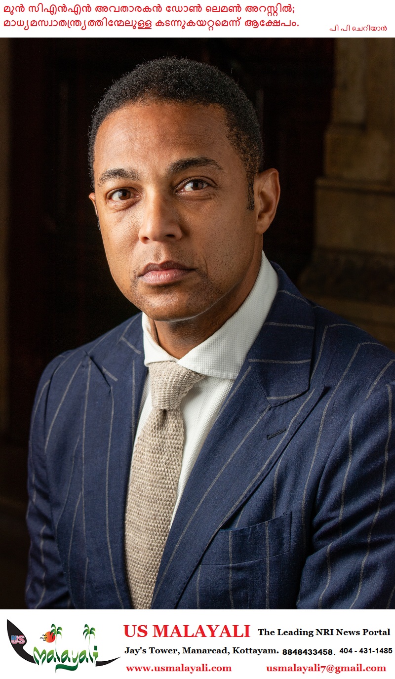 മിനസോട്ട:മിനസോട്ടയിലെ ഒരു പള്ളിയിൽ നടന്ന പ്രതിഷേധത്തിനിടെ നിയമലംഘനം നടത്തിയെന്നാരോപിച്ച് മുൻ സിഎൻഎൻ മാധ്യമപ്രവർത്തകൻ ഡോൺ ലെമണെ ലോസ് ഏഞ്ചൽസിൽ വച്ച് ഫെഡറൽ ഏജന്റുകൾ അറസ്റ്റ് ചെയ്തു. നിലവിൽ സ്വതന്ത്ര മാധ്യമപ്രവർത്തകനായി ജോലി ചെയ്യുന്ന ലെമൺ, ഗ്രമ്മി അവാർഡ് റിപ്പോർട്ട് ചെയ്യാൻ എത്തിയപ്പോഴാണ് ബെവർലി ഹിൽസിൽ വച്ച് പിടിയിലായത്.