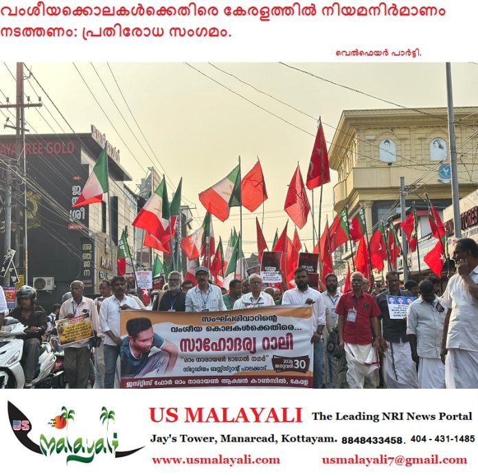 Photo: സംഘ്പരിവാറിൻ്റെ വംശീയ കൊലകൾക്കെതിരെ ജസ്റ്റിസ് ഫോർ രാം നാരായൺ ആക്ഷൻ കൗൺസിൽ പാലക്കാട്ട് സംഘടിപ്പിച്ച സാഹോദര്യ റാലി