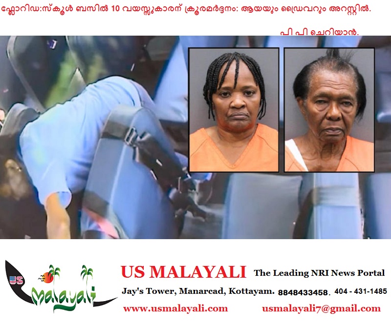 ഫ്ലോറിഡ:ഫ്ലോറിഡയിലെ ഹിൽസ്ബറോ കൗണ്ടിയിൽ സ്കൂൾ ബസിനുള്ളിൽ വെച്ച് ഓട്ടിസം ബാധിച്ച പത്തു വയസ്സുകാരനെ നിരന്തരം മർദ്ദിച്ച സംഭവത്തിൽ സ്കൂൾ ജീവനക്കാരായ രണ്ട് സ്ത്രീകൾ അറസ്റ്റിലായി. ജുവാനിറ്റ റൈറ്റ് (79) എന്ന ബസ് സഹായിയും ടോണിയ റൈസ്-കോൺസ്റ്റന്റ് (62) എന്ന ഡ്രൈവറുമാണ് പിടിയിലായത്.