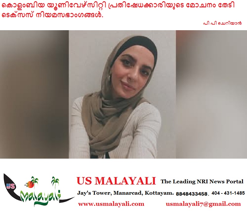 കൊളംബിയ:കൊളംബിയ യൂണിവേഴ്സിറ്റി പ്രതിഷേധക്കാരിയുടെ മോചനം തേടി ടെക്സസ് നിയമസഭാംഗങ്ങൾ