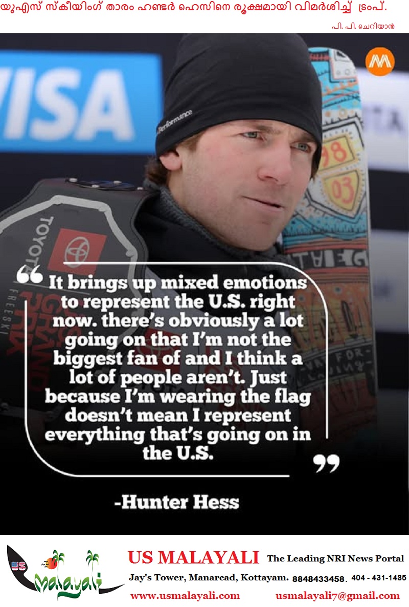 മിലാനോ കോർട്ടിന: നിലവിലെ ശൈത്യകാല ഒളിമ്പിക്സിൽ അമേരിക്കയെ പ്രതിനിധീകരിക്കുന്നതിൽ തനിക്ക് “മിശ്രവികാരം” ആണെന്ന പ്രസ്താവന നടത്തിയ യുഎസ് ഫ്രീസ്റ്റൈൽ സ്കീയിംഗ് താരം ഹണ്ടർ ഹെസിനെ രൂക്ഷമായി വിമർശിച്ച് പ്രസിഡന്റ് ഡൊണാൾഡ് ട്രംപ്. ഹെസിനെ ഒരു ‘ലൂസർ’ എന്ന് വിശേഷിപ്പിച്ച ട്രംപ്, ഇത്തരക്കാർക്കായി ആർപ്പുവിളിക്കാൻ പ്രയാസമാണെന്നും തന്റെ സോഷ്യൽ മീഡിയ പ്ലാറ്റ്ഫോമിൽ കുറിച്ചു.