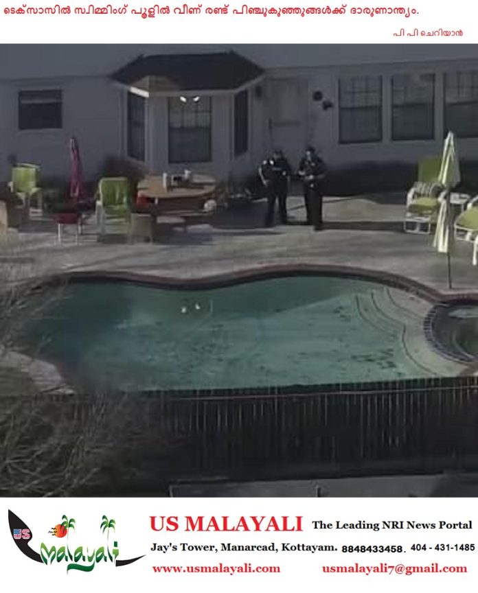 ഹൂസ്റ്റൺ: ടെക്സാസിലെ കാറ്റി മേഖലയിൽ വീടിനോട് ചേർന്നുള്ള സ്വിമ്മിംഗ് പൂളിൽ വീണ് രണ്ട് പെൺകുഞ്ഞുങ്ങൾ മരിച്ചു. ബുധനാഴ്ച രാവിലെയാണ് രണ്ട് വയസ്സും മൂന്ന് വയസ്സും പ്രായമുള്ള സഹോദരിമാരെ സ്വിമ്മിംഗ് പൂളിൽ അബോധാവസ്ഥയിൽ കണ്ടെത്തിയത്.