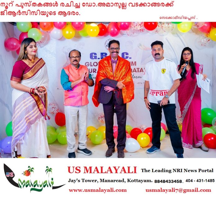 ഡോ.അമാനുല്ല വടക്കാങ്ങരയുടെ സര്ഗസഞ്ചാരം പ്രവാസ ലോകത്തിന് മാതൃകയാണെന്ന് ജി.ആര്.സി.സി ഭാരവാഹികള് പറഞ്ഞു.
