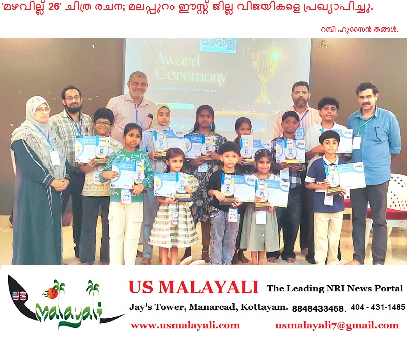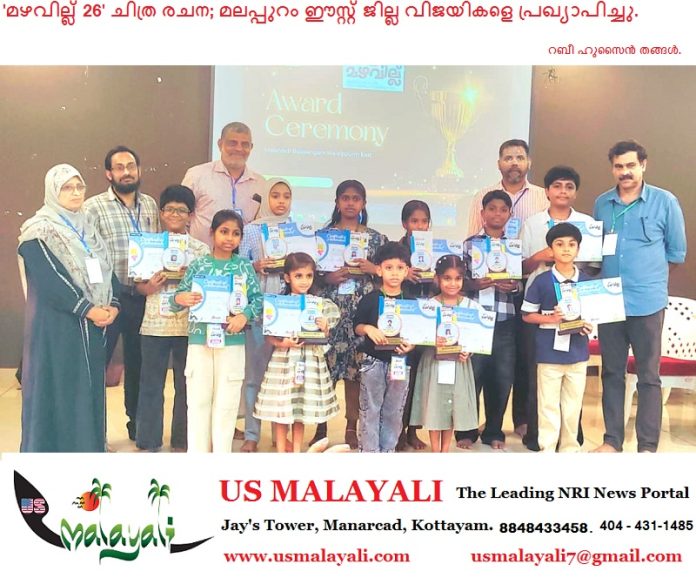 മഞ്ചേരി : മലർവാടി ബാലസംഘം സംസ്ഥാന വ്യാപകമായി സംഘടിപ്പിച്ച മഴവില്ല് ചിത്രരചന മത്സരത്തിന്റെ മലപ്പുറം ഈസ്റ്റ് ജില്ല വിജയികളെ പ്രഖ്യാപിച്ചു. മഞ്ചേരി മുബാറക്ക് ഹാളിൽ നടന്ന അവാർഡ്ദാന ചടങ്ങിൽ മലർവാടി സംസ്ഥാന കോർഡിനേറ്റർ മുസ്തഫ മങ്കട, മലർവാടി മുൻ ജില്ല കോർഡിനേറ്റർ അബ്ദുറഹ്മാൻ മമ്പാട്, ജില്ല വനിത കോർഡിനേറ്റർ തസ്നീം ബാനു എന്നിവർ വിജയികൾക്ക് ഉപഹാരം നൽകി.