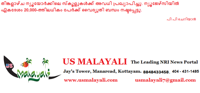 തിങ്കളാഴ്ച ന്യൂയോർക്കിലെ സ്കൂളുകൾക്ക് അവധി പ്രഖ്യാപിച്ചു.