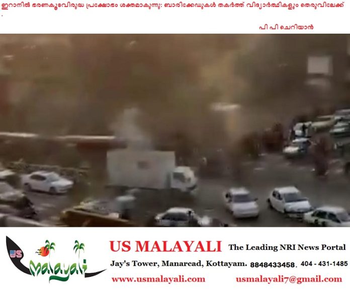 ഇറാനിലെ ഇസ്ലാമിക ഭരണകൂടത്തിനെതിരായ ജനകീയ പ്രക്ഷോഭം പുതിയ തലത്തിലേക്ക്. തെഹ്റാനിലെ സർവ്വകലാശാലകളിൽ ഭരണകൂടം ഏർപ്പെടുത്തിയ ഉപരോധം ലംഘിച്ച് ആയിരക്കണക്കിന് വിദ്യാർത്ഥികൾ തെരുവിലിറങ്ങി പ്രക്ഷോഭകാരികൾക്കൊപ്പം ചേർന്നു.