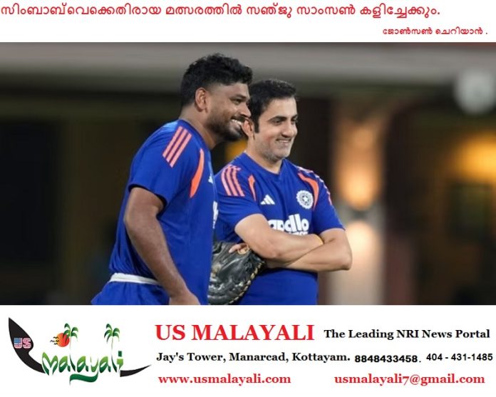 ട്വന്റി 20 ലോകകപ്പിലെ സിംബാബ്വെക്കെതിരായ സൂപ്പര് 8 മത്സരത്തില് ഇന്ത്യക്കായി സഞ്ജു കളിച്ചേക്കും. മലയാളിതാരത്തെ പ്ലയിങ് ഇലവനില് ഉള്പ്പെടുത്തുന്നത് ആലോചനയിലുണ്ടെന്ന് ബാറ്റിംഗ് പരിശീലകന് സിതാന്ഷു കോട്ടക്ക് പറഞ്ഞു. ഇരു ടീമുകളും ഇന്ന് മത്സരത്തിനു മുന്നോടിയായുള്ള അവസാനഘട്ട പരിശീലനം നടത്തി.