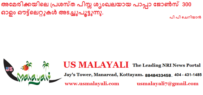 അറ്റ്ലാന്റ:അമേരിക്കയിലെ പ്രശസ്ത പിസ്സ ശൃംഖലയായ പാപ്പാ ജോൺസ് തങ്ങളുടെ 300 ഓളം ഔട്ട്ലെറ്റുകൾ അടച്ചുപൂട്ടാൻ ഒരുങ്ങുന്നു. കമ്പനിയുടെ ചീഫ് ഫിനാൻഷ്യൽ ഓഫീസർ രവി താനാവാലയാണ് ഈ വിവരം പുറത്തുവിട്ടത്.